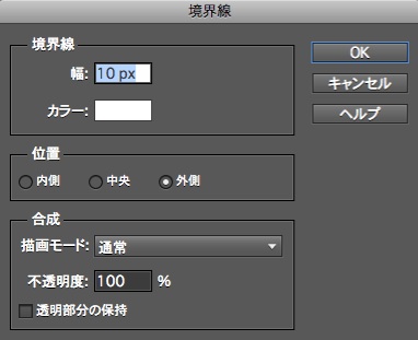 カラーは白(FFFFFF)位置は外側。幅はお好みで。